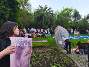 Durante la jornada, se exigió esclarecer la desaparición de Julia Chuñil y se denunció la complicidad del Estado, el poder judicial, la CONADI y las empresas extractivistas, responsables del encubrimiento que mantiene el caso impune pese a las múltiples alertas sobre irregularidades en la investigación y el rol de las empresas en la zona.