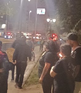 Al caer la noche, la manifestación que había transcurrido pacificamente, fue agredida por la represión policial con zorrillos, guanacos y carros celulares. Mandaron piquetes de pacos motoristas tirando gas pimienta con spray.