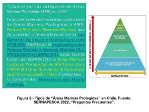 De esta manera, creando explícitamente una nueva categoría de “protección”, los EMCPO se sumaron a la lista de “Áreas protegidas acuáticas” (privatizables) que ya había consignado varios años antes el Servicio Nacional de Pesca y Acuicultura (SERNAPESCA) y que se muestran en la siguiente Figura 2, elaborada con la información que entrega SERNAPESCA en su página web.