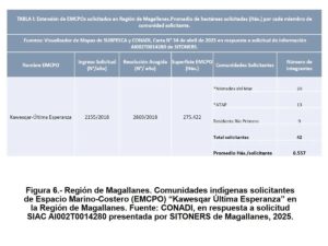 Quizás si más escandaloso que lo anterior es la situación en Magallanes, donde existen en tramitación a la fecha, tres solicitudes de EMCPO (Ley Lafkenche).