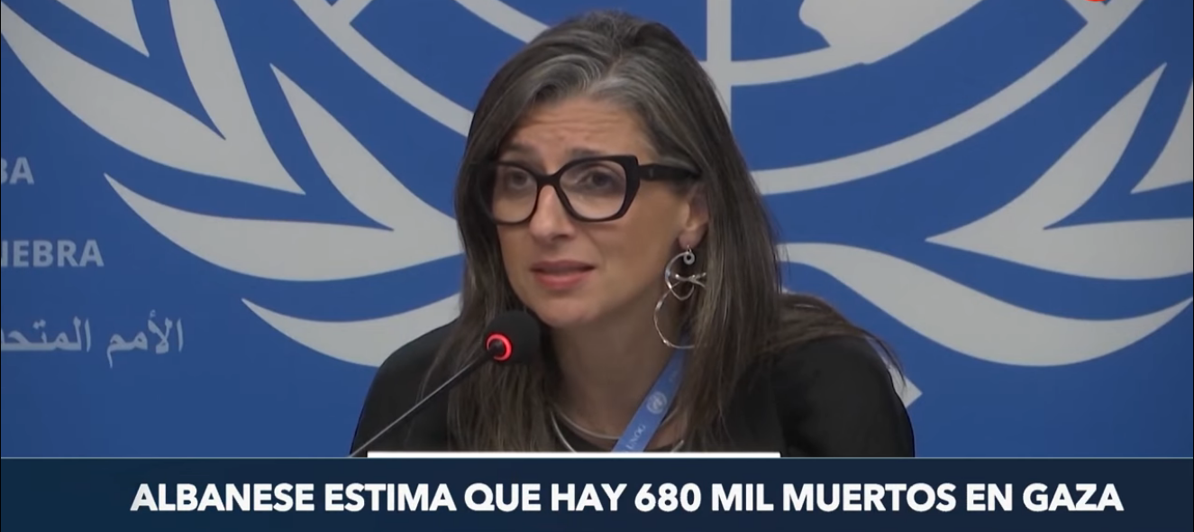 Imagen superior: La relatora de la ONU, Albanese, estima en 680.000 la suma total de muertos en Gaza