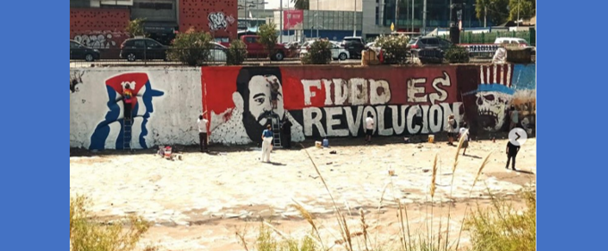 En el marco del Festival Callejero, diversas brigadas muralista, a orillas del río Mapocho, en Santiago de Chile, se dio el vamos a «100 murales por Fidel», para conmemorar este 2026 el centenario del Comandante Fidel Castro y para visibilizar el brutal endurecimiento de medidas por Trump hacia la Isla.