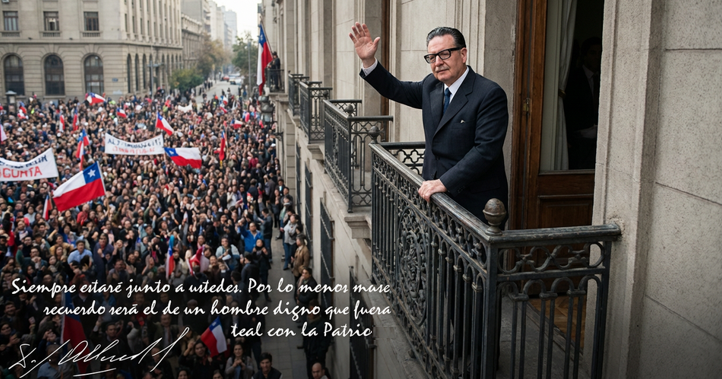 Tú lo dijiste: «Trabajadores de mi patria, tengo fe en Chile y su destino. Superarán otros hombres este momento gris y amargo en el que la traición pretende imponerse». Alguien dijo que «la noche es más oscura justo antes del amanecer». Y aquí vamos, alentados por tu ejemplo y lealtad.