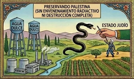 . - En un mundo ideal, Irán preferiría devolver Palestina a sus verdaderos dueños históricos e indígenas intacta —ni envenenada radiactivamente ni completamente destruida. Les encantaría devolver la tierra a su gente con las centrales eléctricas, refinerías y plantas desalinizadoras.